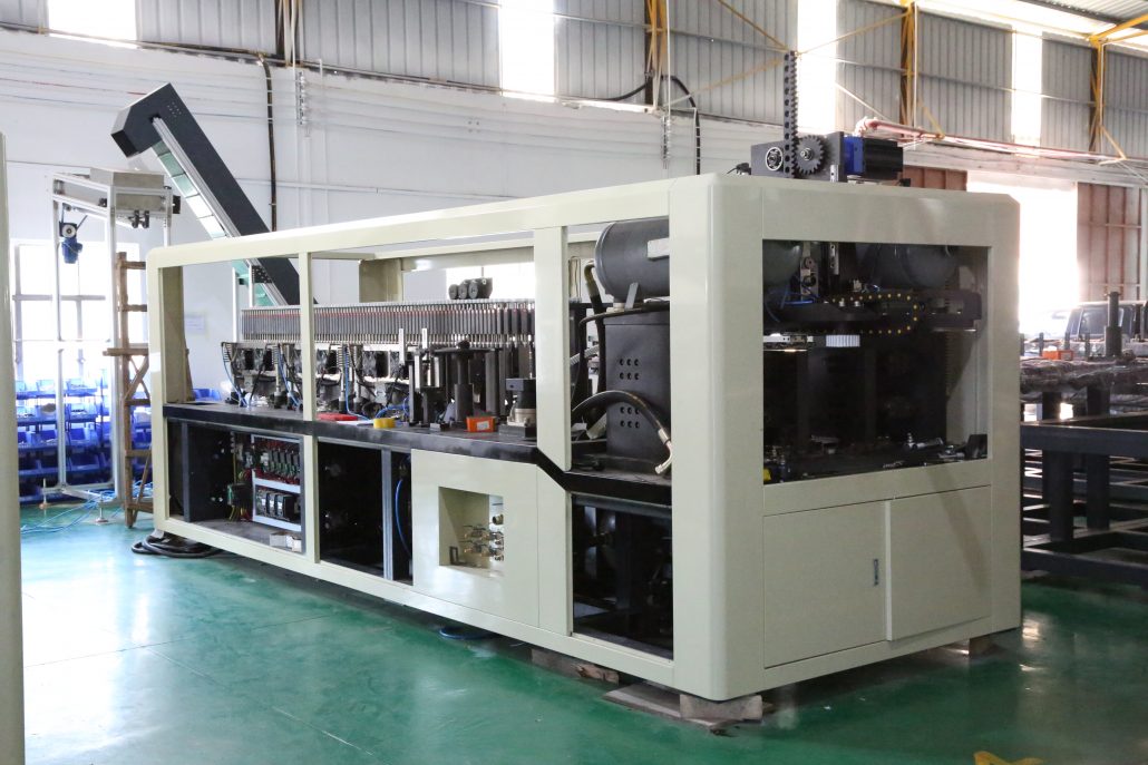In response to increasingly diverse market demands, variable pitch blow molding machines offer a different solution. The spacing between their mold cavities can be adjusted, enabling flexible layouts such as “1-out-of-4,” “1-out-of-6,” “1-out-of-8,” and even more. For example, a “1-out-of-6” variable pitch machine can achieve a capacity of up to 12,000 bottles per hour under optimized conditions.